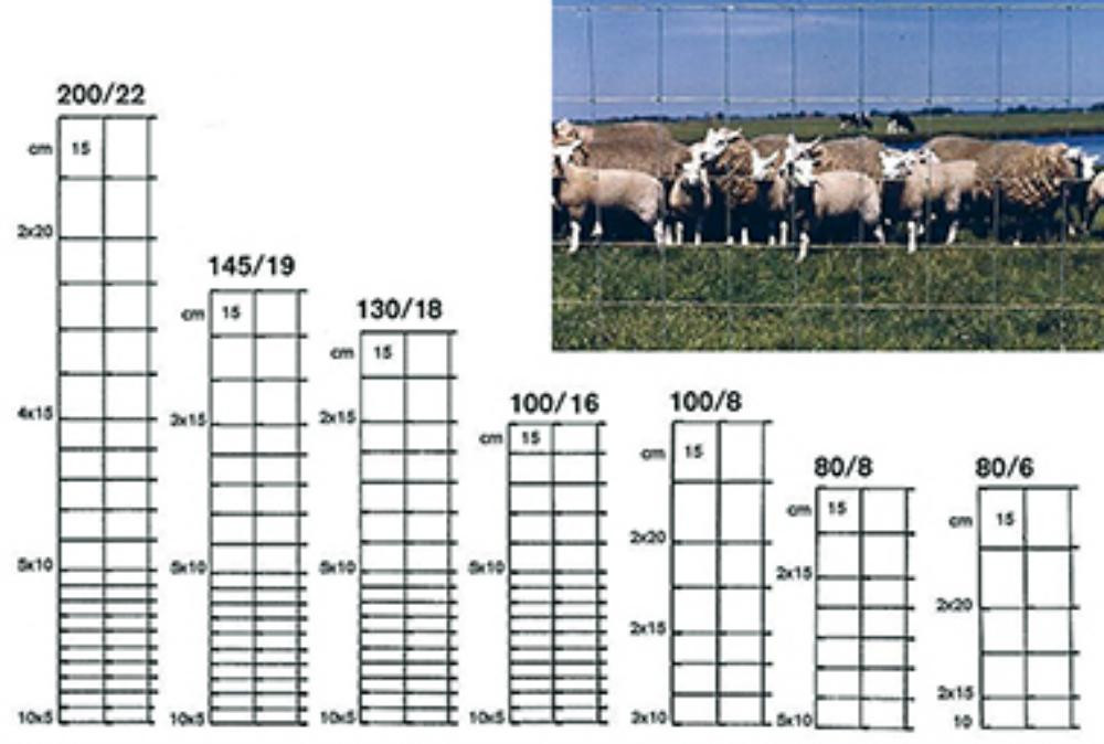 Abmessung: Höhe (cm) / Anzahl Drähte horizontal / Abstand Drähte vertikal