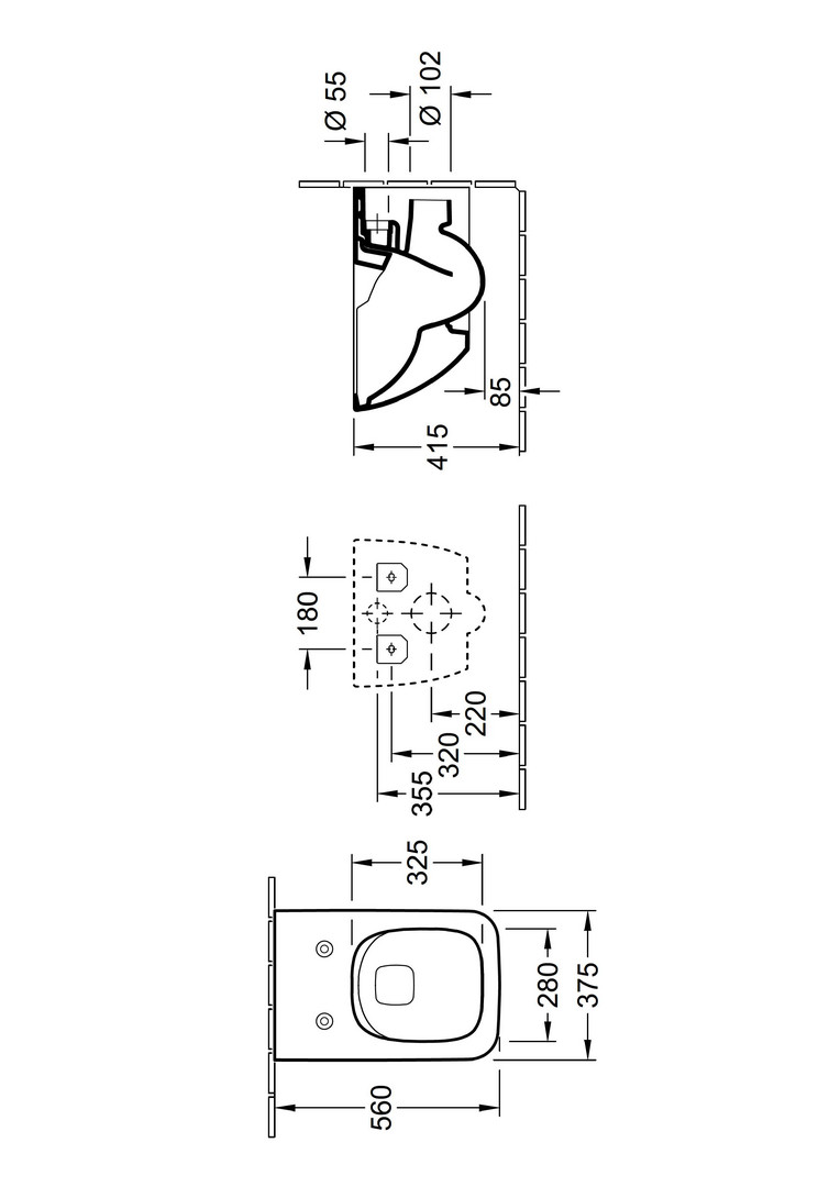V & B Levita Wand-Tiefspül-WC 56 x 37,5 cm, weiß, spülrandlos W31201