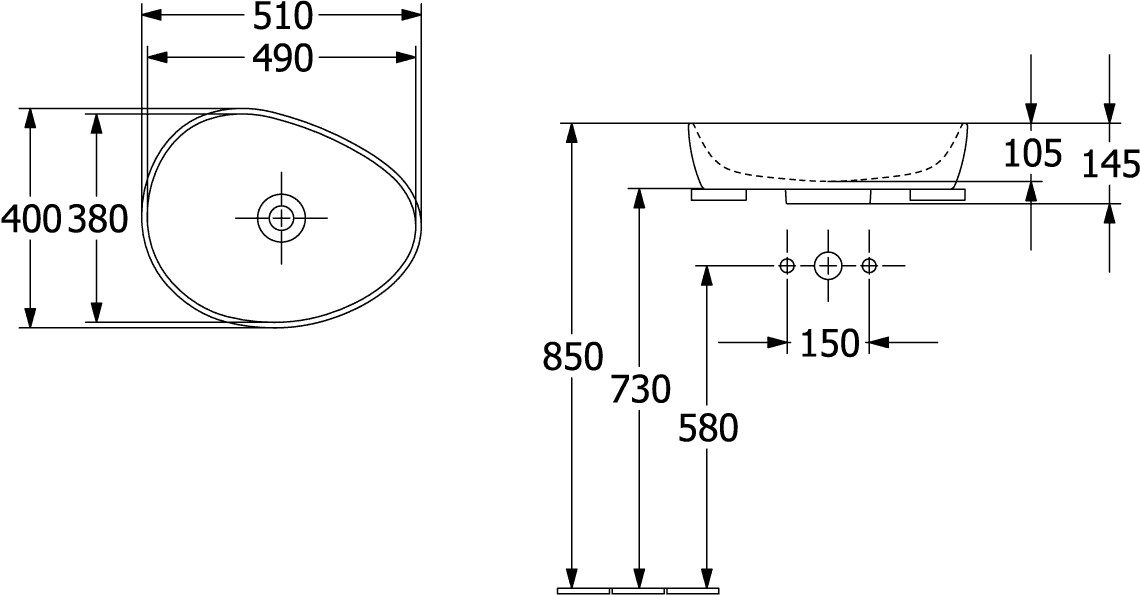 V&B Aufsatzwaschtisch ANTAO 51x40cm, asymmetrisch, ohne Überlauf, stone white C-plus 268656
