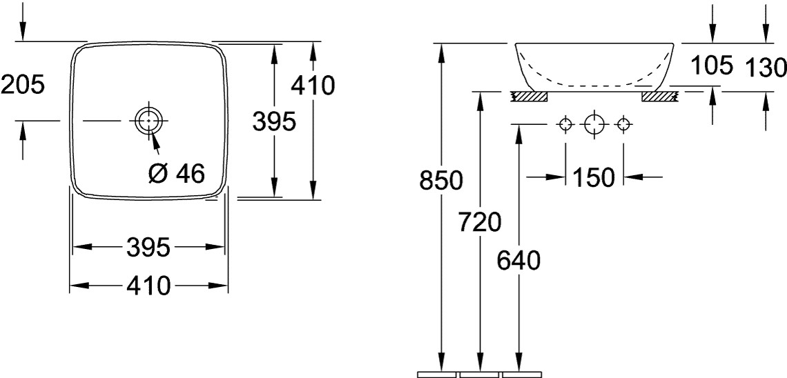 für Wandauslauf-Armatur oder Armatur mit erhöhtem Standfuß