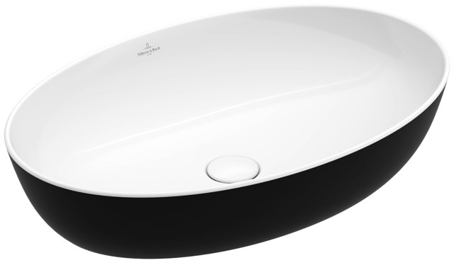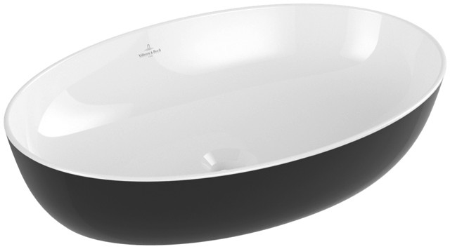 V&B Aufsatzwaschtisch Artis 61x41cm, oval, ohne Hahnloch, ohne Überlauf, Pure black C-plus W921529