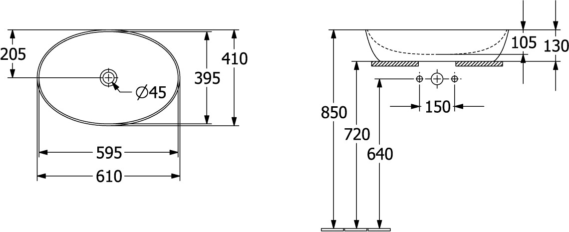 V&B Aufsatzwaschtisch Artis 61x41cm, oval, ohne Hahnloch, ohne Überlauf, Pure black C-plus W921529
