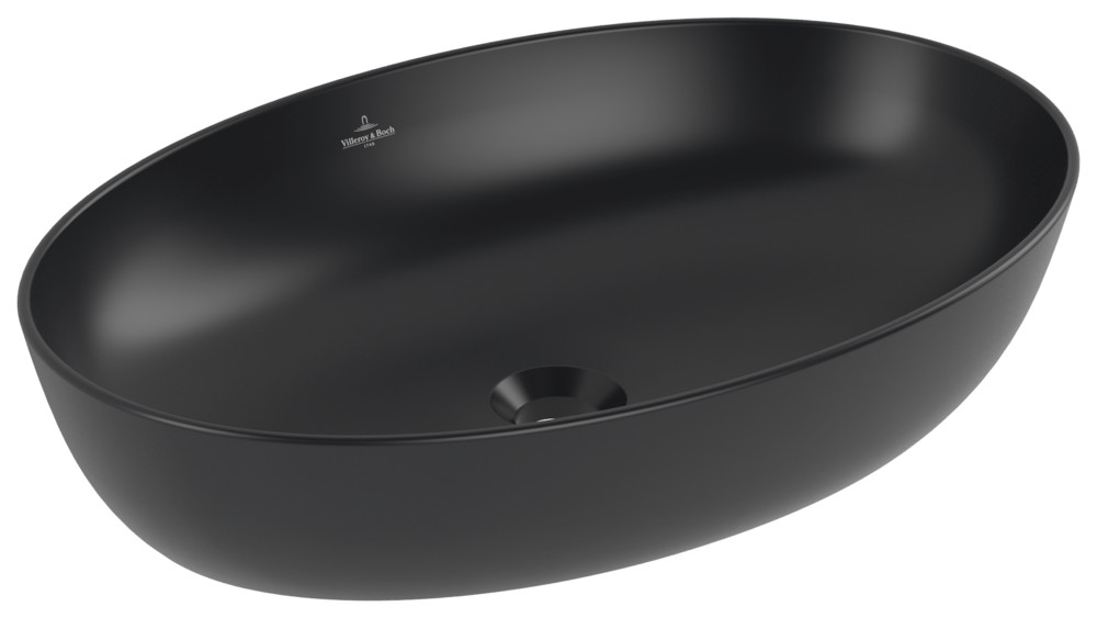 V&B Aufsatzwaschtisch Artis 61x41cm, oval, ohne Hahnloch, ohne Überlauf, Pure black C-plus W921529