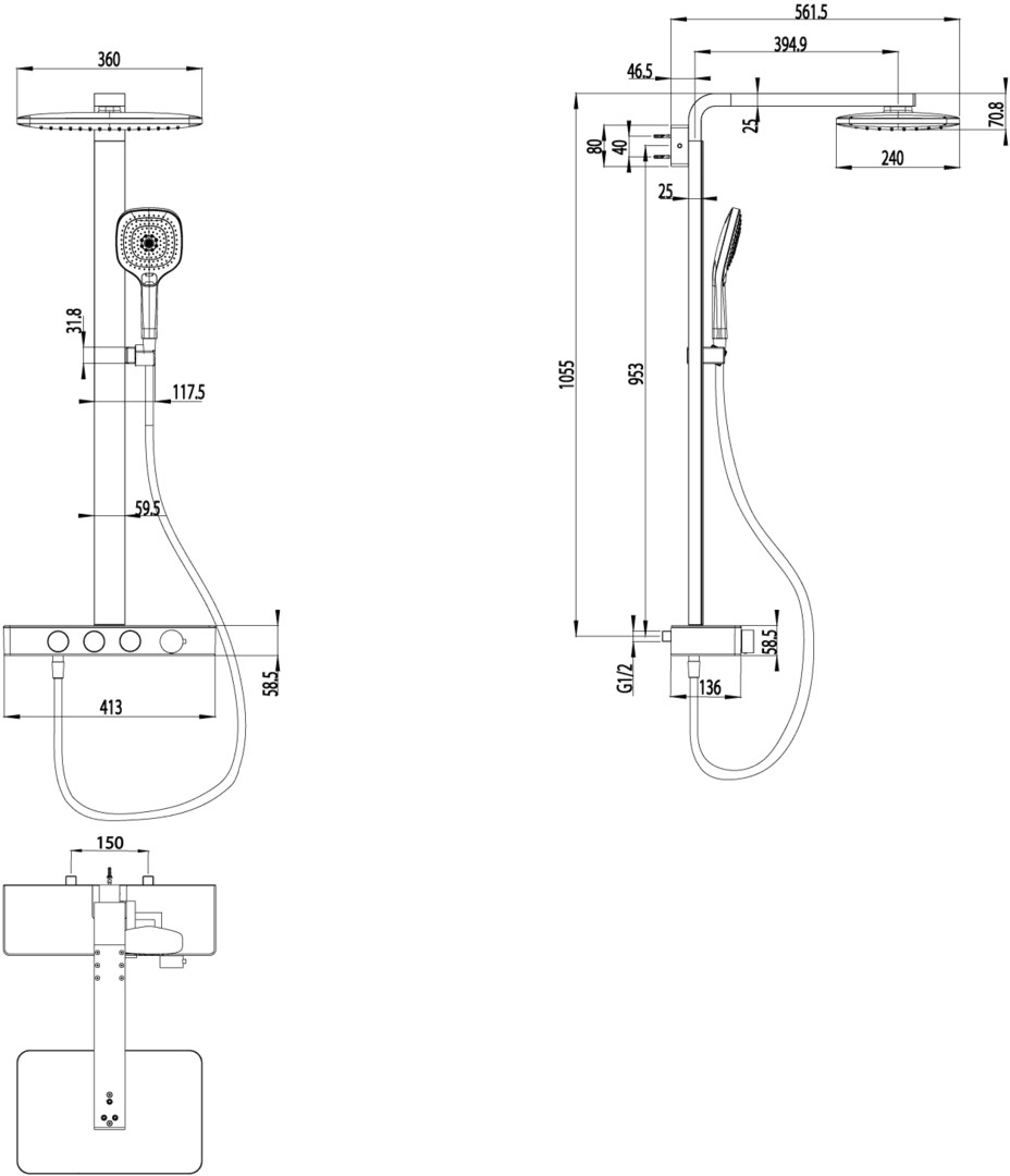 V&B Duschsystem Infinity Showers 413x108x561mm, eckig, Wandmontage, matt black