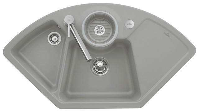 V&B Eckspüle Solo Eck mit Ablaufgarnitur, Excenterbetätigung, fossil CeramicPlus