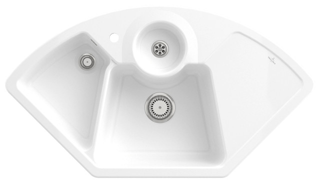 V&B Eckspüle Solo Eck mit Ablaufgarnitur, Handbetätigung, weiß alpin CeramicPlus