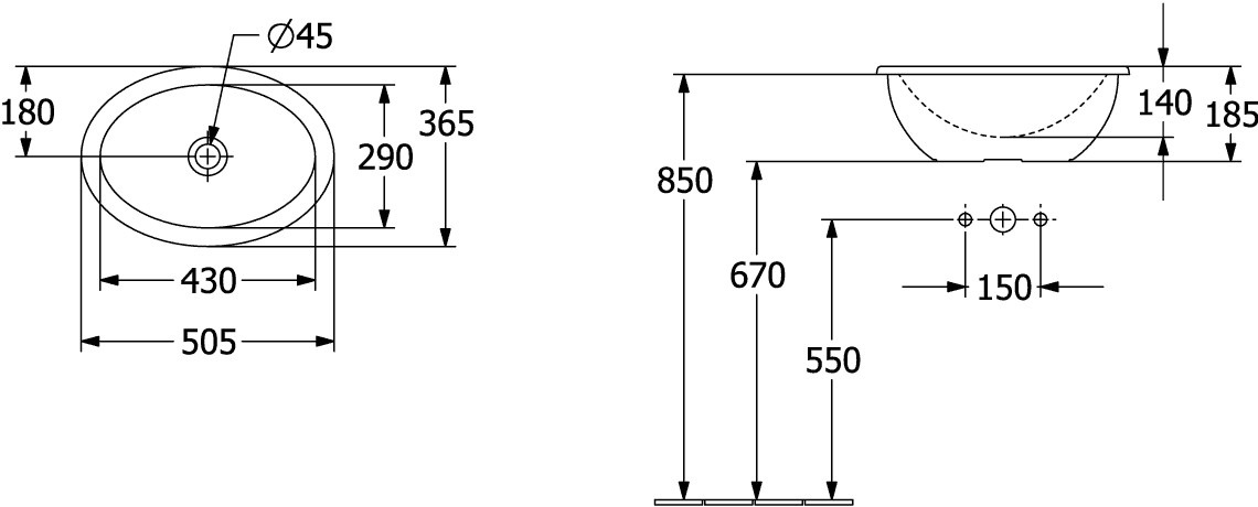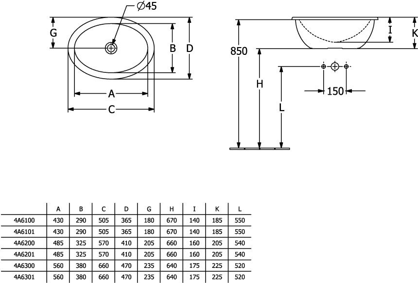 TitanCeram, Außenseite glasiert, ohne Hahnlochbank, ohne Überlauf, mit Ausschnittschablone bei Modellen ohne Überlauffunktion muss ein nicht verschließbares Ventil verwendet werden, mit Ausschnittschablone