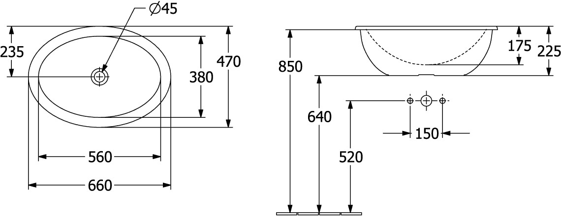 V&B Einbauwaschbecken LOOP & FRIENDS oval, ohne Hahnlochbank, ohne Überlauf, 66 x 47 cm, weiß W38575