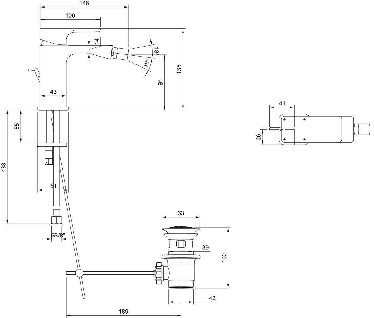 43 x 135 x 146 mm, Eckig, Standmontage, bestehend aus: 1 x Armatur, 1 x Strahlregler Schlüssel, 1 x Ablaufgarnitur, 1 x Befestigung, 2 x Anschlussschläuche, 1 x Montageanleitung, Kippen, Material aus Messing, Anschlusstyp 3/8'', mit verstellbarem Strahlregler, Auslauflänge 122 mm, Auslaufhöhe 91 mm