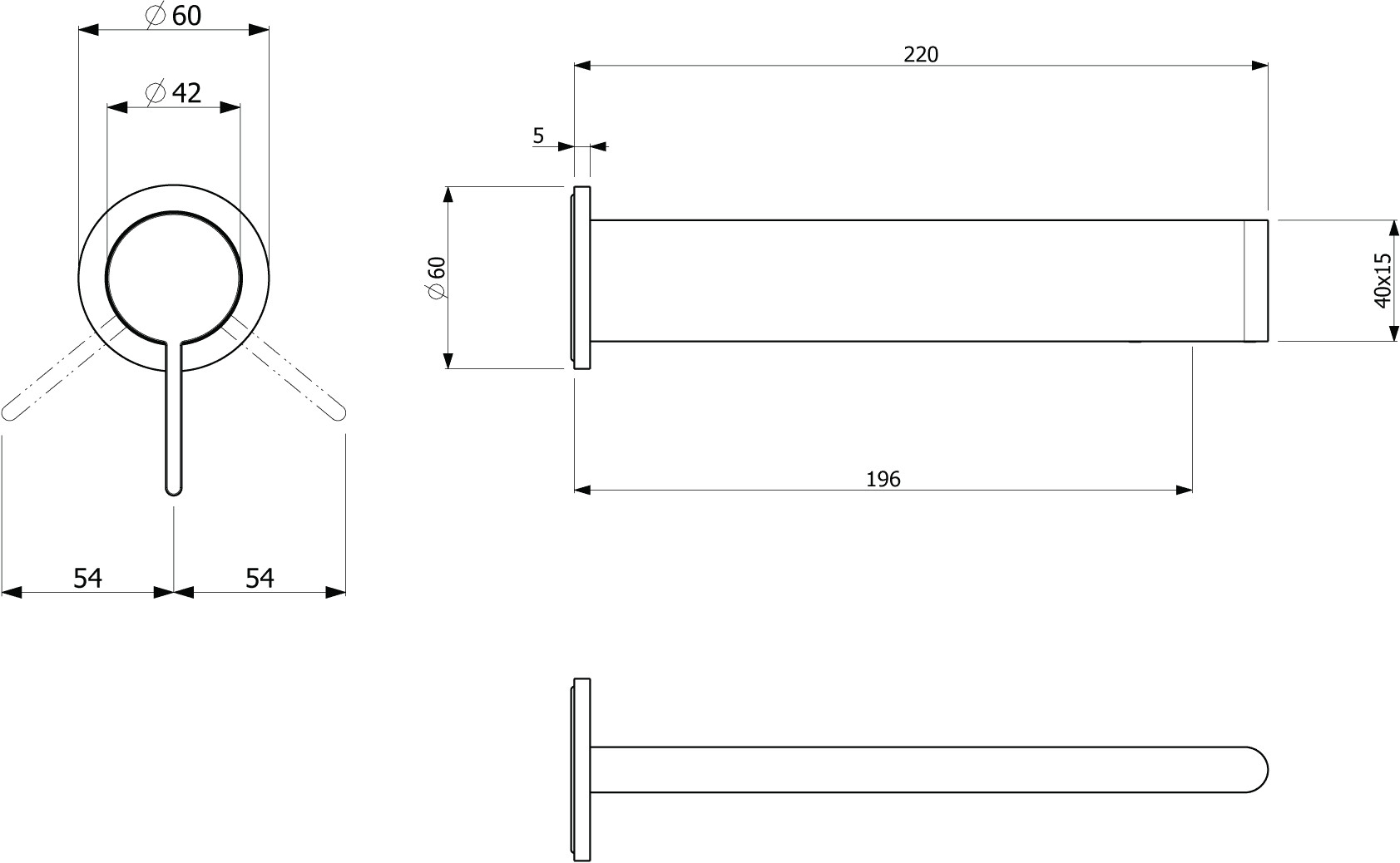 Einhebel-Waschtischarmatur, 160 x 100 x 220 mm, Wandmontage, bestehend aus: 1 x Armatur, 1 x Strahlregler Schlüssel, 1 x Montageanleitung, Material aus Messing, erforderliches Zubehör: TVW10611B15XXX - Universal-Einbaukörper für Unterputz-Einhebel-Armatur