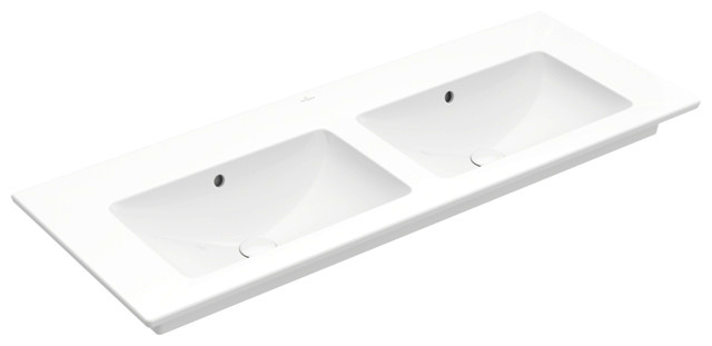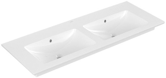 V&B Möbel-Doppelwaschtisch VENTICELLO 130 x 50 cm, ohne Hahnloch, mit Überlauf, weiß C-plus W39395