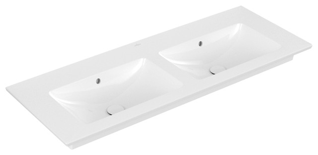 V&B Möbel-Doppelwaschtisch VENTICELLO 130 x 50 cm, ohne Hahnloch, mit Überlauf, weiß W39394