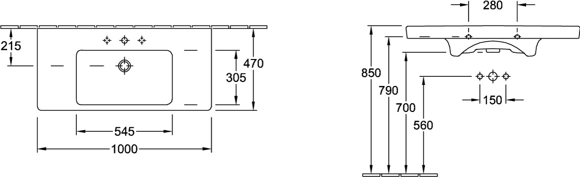 V&B Möbel-Waschtisch Subway 2.0 100 x 47 cm, weiß, mit Hahnloch, Überlauf W38173