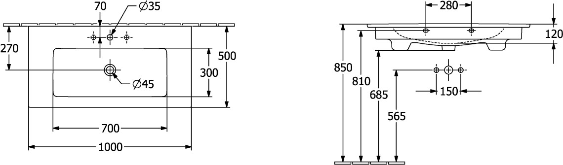 | Durchschlagbare Armaturenlöcher | links und rechts |