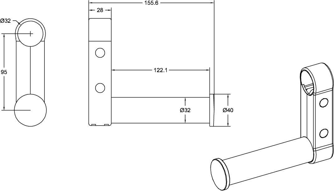 aus Aluminium mit Pulverbeschichtung, für Anbringung an Griffsysteme mit Rohrdurchmesser 3,2 CM