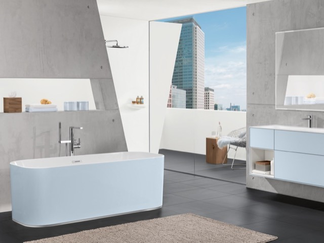 V&B Rechteck-Freistehwanne Finion Ausstattung Chrome Quaryl, Push-to-Open-Ventil, Überlauf, Wasserzulauf, weiß W214309