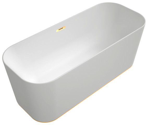 V&B Rechteck-Freistehwanne Finion Ausstattung Gold Quaryl, Push-to-Open-Ventil, Überlauf, weiß W214269