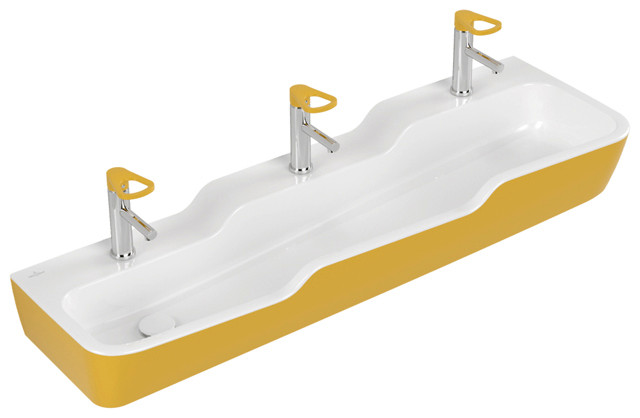 V&B Reihenwaschtisch O.NOVO KIDS 130 x 43 cm, für 3x 1-Loch Armaturen, ohne Überlauf, Sunshine Yellow