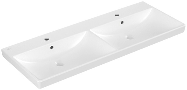 V&B Schrank-Doppelwaschtisch AVENTO 120x47cm, eckig, 2xHahnloch, mit Überlauf, weiß 264097