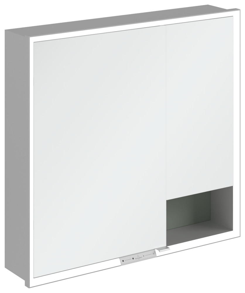 V&B Spiegelschrank My View + 80 x 75 x 16,8 cm, Soft Green, LED-Beleuchtung, Aluminium silber matt eloxiert
