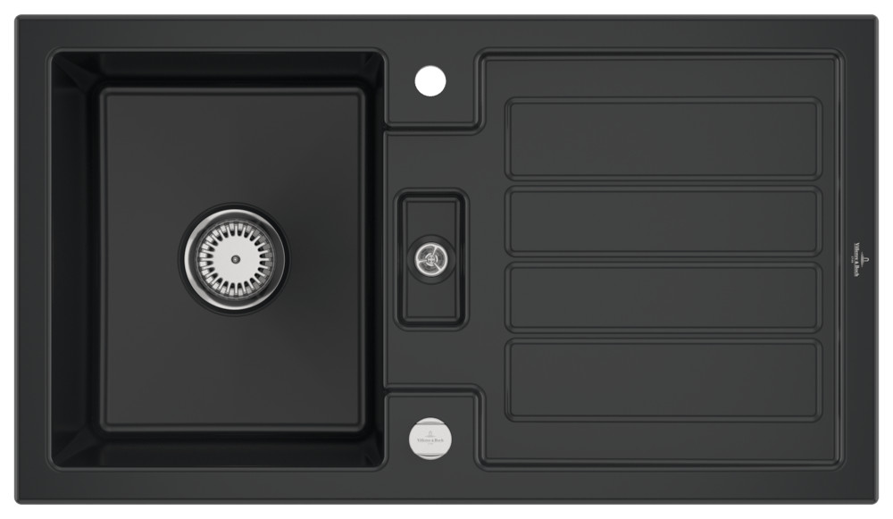 V&B Spüle Flavia 50 mit Ablaufgarnitur, rund mit Excenterbetätigung, pure black