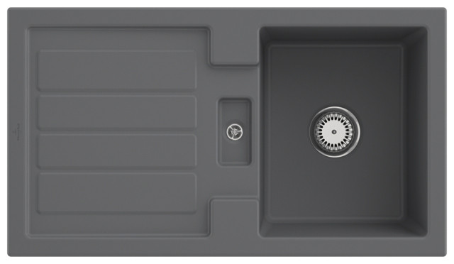 V&B Spüle Flavia 50 mit Ablaufgarnitur, rund mit Handbetätigung, stone CeramicPlus