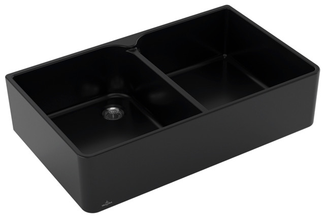 V&B Spülstein Doppelbecken 90 X Ablaufgarnitur mit Handbetätigung, mit Handbetätigung, ebony CeramicPlus