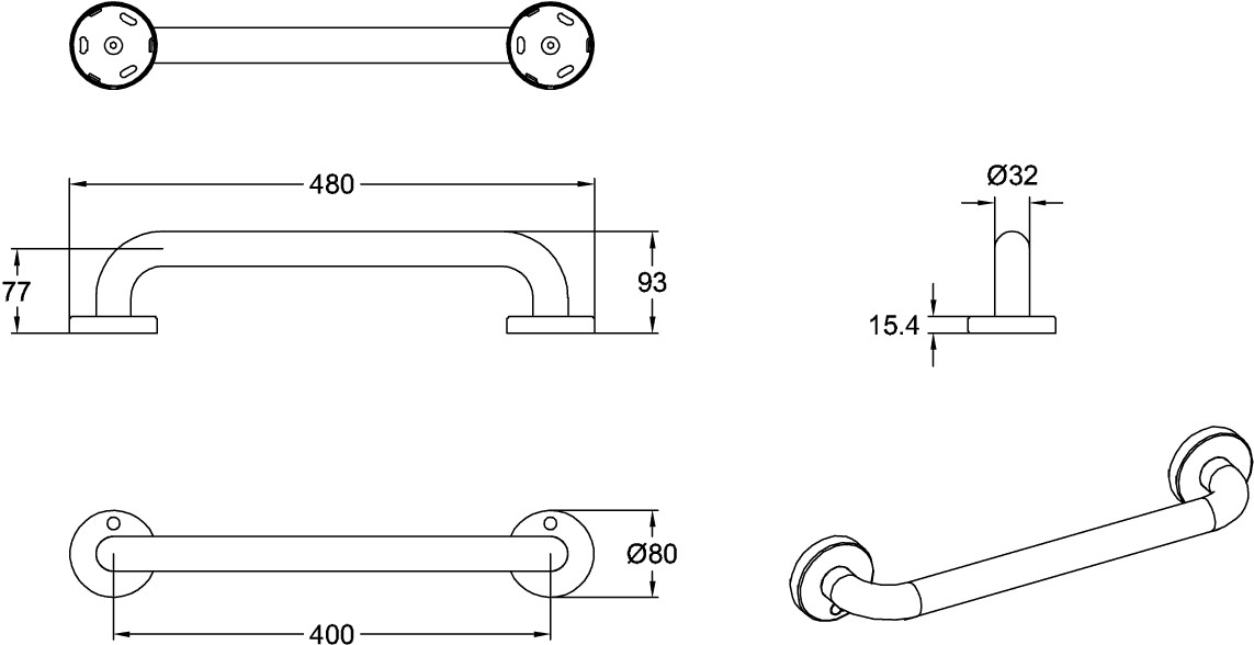 aus Aluminium mit Pulverbeschichtung, kann vertikal sowie horizontal angebracht werden, mit Standardbefestigungsmaterial, Rohrdurchmesser 32 mm, maximale Belastbarkeit laut TÜV 120 kg