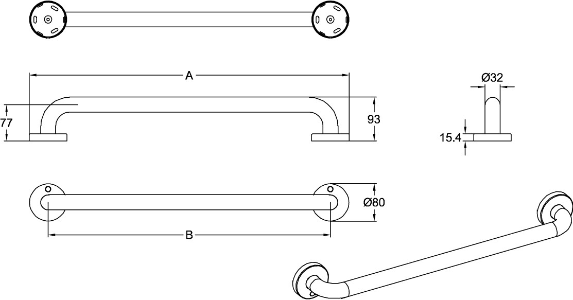 aus Aluminium mit Pulverbeschichtung, kann vertikal sowie horizontal angebracht werden, mit Standardbefestigungsmaterial, Rohrdurchmesser 32 mm, maximale Belastbarkeit laut TÜV 120 kg
