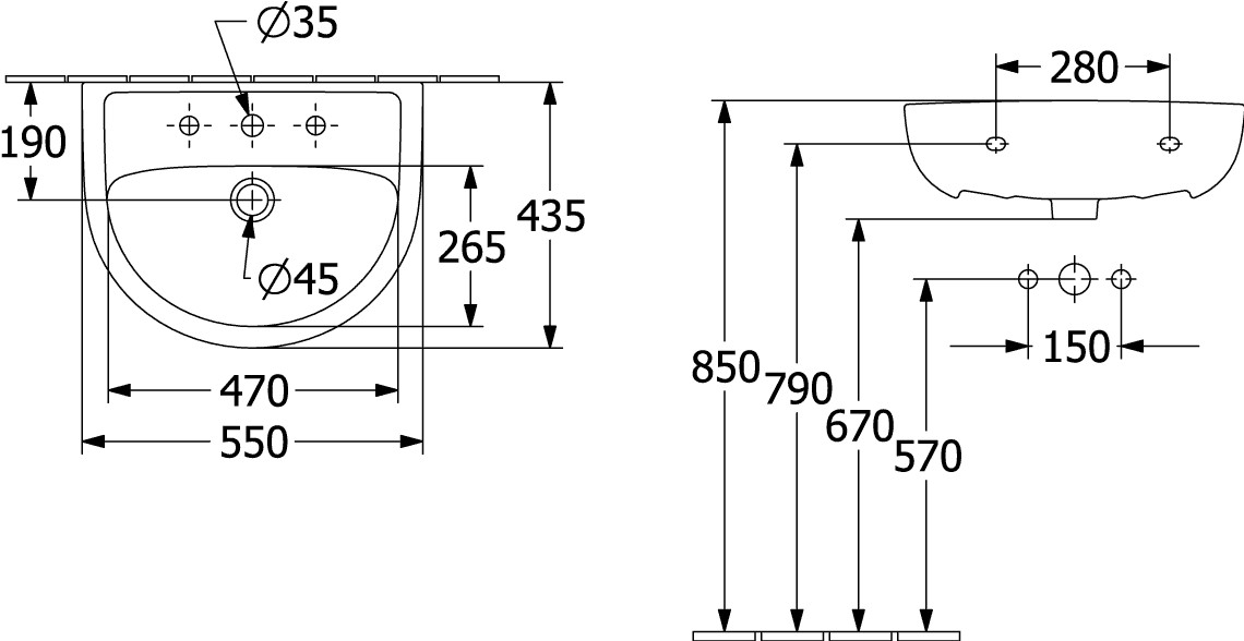 | Anzahl der Hahnlöcher je Waschplatz | 1 |