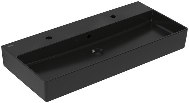 V&B Waschtisch Memento 2.0 100x47cm, 2xHahnloch, mit Überlauf, pure black C-plus W39270