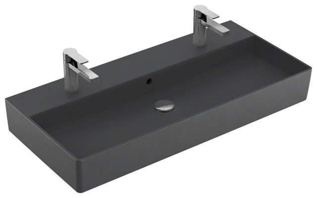 V&B Waschtisch Memento 2.0 100x47cm, 2xHahnloch, mit Überlauf, graphite C-plus W39268
