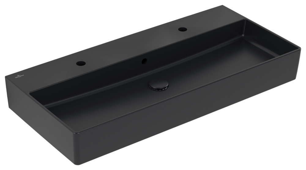 V&B Waschtisch Memento 2.0 100x47cm, 2xHahnloch, mit Überlauf, pure black C-plus W39270