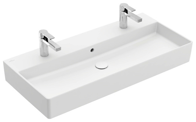 V&B Waschtisch Memento 2.0 100x47cm, 2xHahnloch, mit Überlauf, weiß alpin C-plus W39269