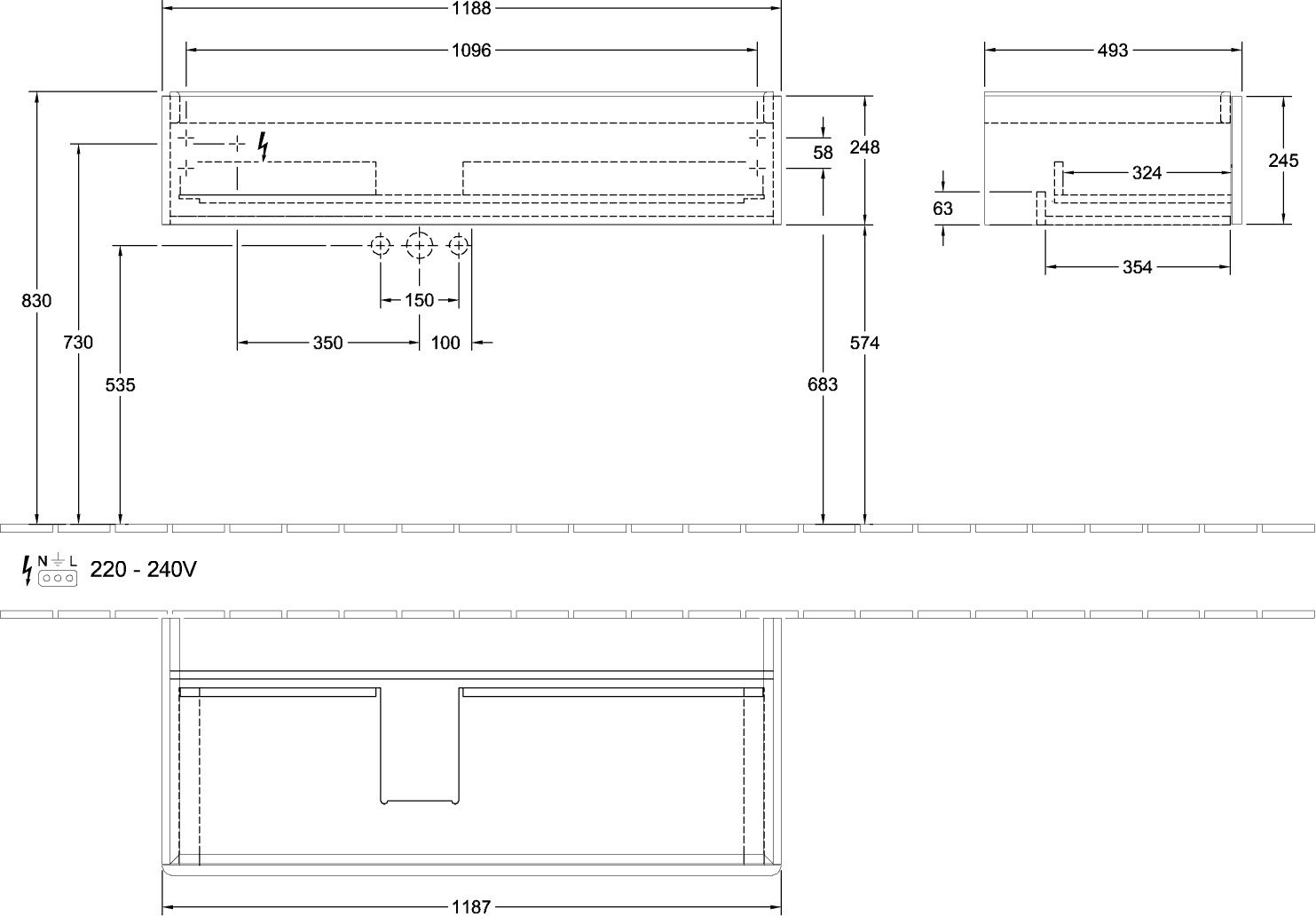 V&B Waschtisch-Unterschrank Antao 118,8x25,6x49,3cm, ohne Frontstruktur, anthracite matt lacquer W425944