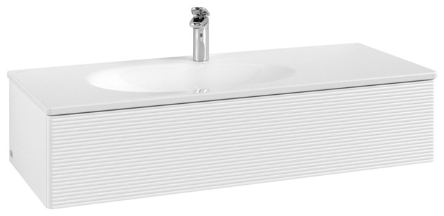V&B Waschtisch-Unterschrank Auszugbeleuchtung Antao 118,8x25,6x49,3cm, mit Frontstruktur, white matt lacquer