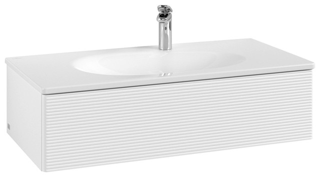 V&B Waschtisch-Unterschrank Auszugsbeleuchtung Antao 98,8x25,6x49,3cm, mit Frontstruktur, white matt lacquer