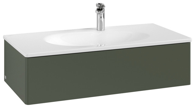 V&B Waschtisch-Unterschrank Auszugsbeleuchtung Antao 98,8x25,6x49,3cm, ohne Frontstruktur, leaf green matt lacquer