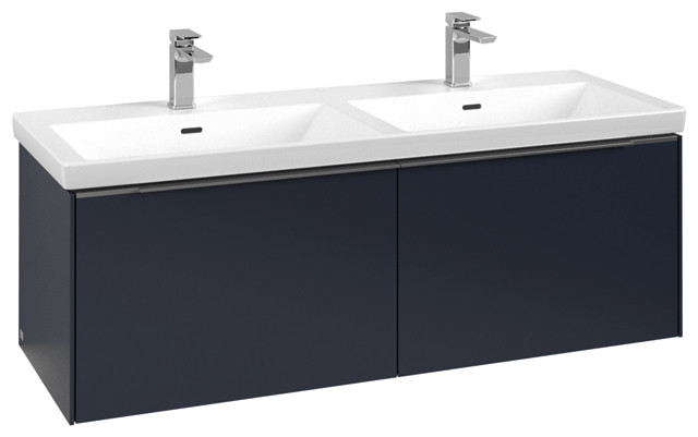 V&B Waschtisch-Unterschrank Subway 3.0 127,2x42,9x47,8cm, mit LED/Griff Aluminium glänzend, marine blue