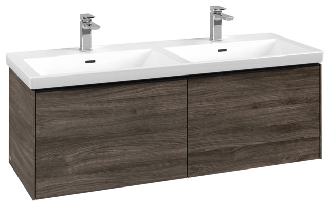 V&B Waschtisch-Unterschrank Subway 3.0 127,2x42,9x47,8cm, ohne LED/Griff Volcano black, stone oak