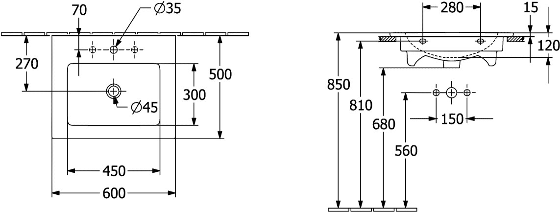| Durchschlagbare Armaturenlöcher | links und rechts |
