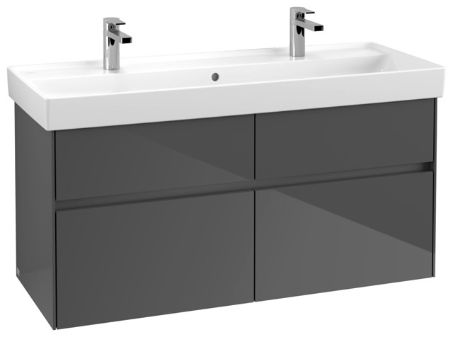 V&B Waschtischunterschrank Collaro 115,4x54,6x44,4cm, Waschbecken mittig, Glossy Grey