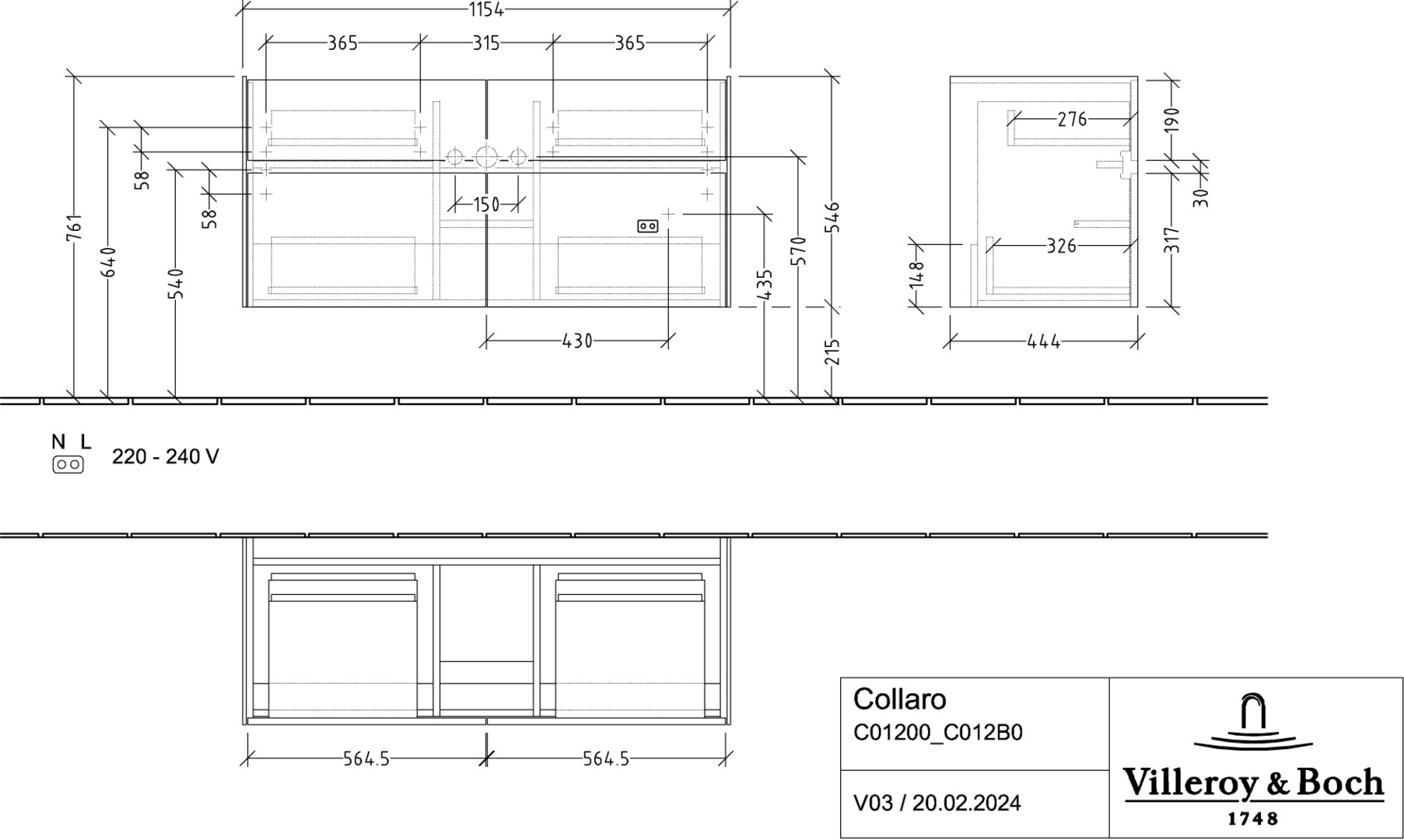 V&B Waschtischunterschrank Collaro 115,4x54,6x44,4cm, Waschbecken mittig, gaphite