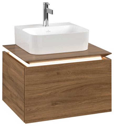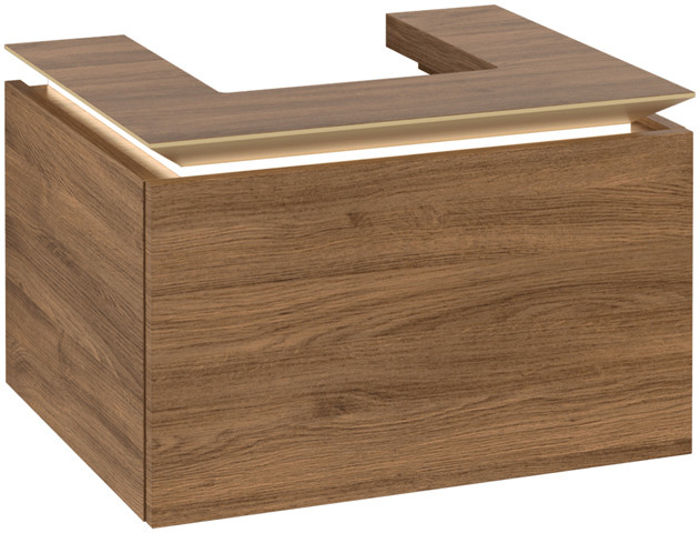 V&B Waschtischunterschrank Legato 60x38x50cm, Waschtisch mittig, mit LED-Beleuchtung, Kansas Oak