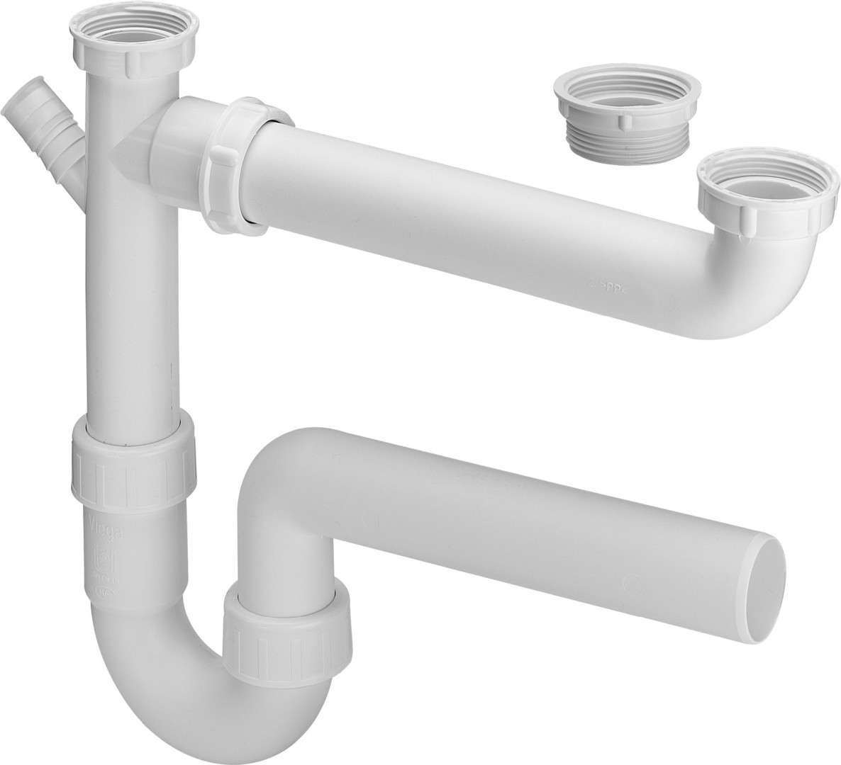 Viega Ablaufverbindung 79485 G 1 1/2 x DN 50 x 90-310 mm, Kunststoff weiß, für Doppelspülen 186616