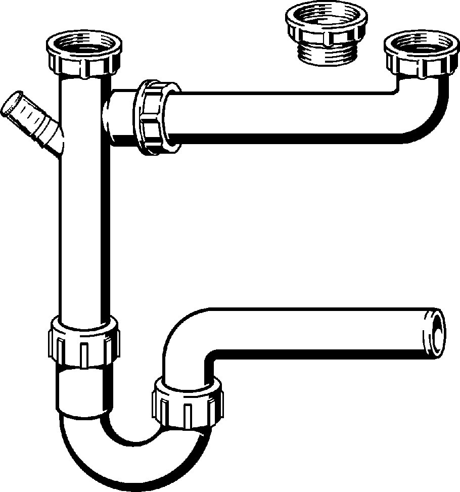 Ablauf exzentrisch, Abwasserschlauchanschluss mit Kappe, Höhenausgleichsstück, Röhrengeruchverschluss, Ablauf waagerecht, güteüberwacht nach DIN EN 274