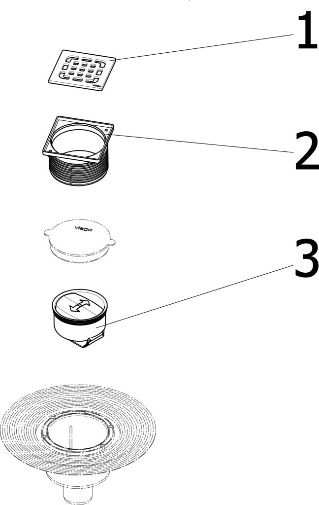 Viega Badablauf Advantix 4936.3 Kunststoff grau, DN 50, Ablauf senkrecht, Rahmen Kunststoff