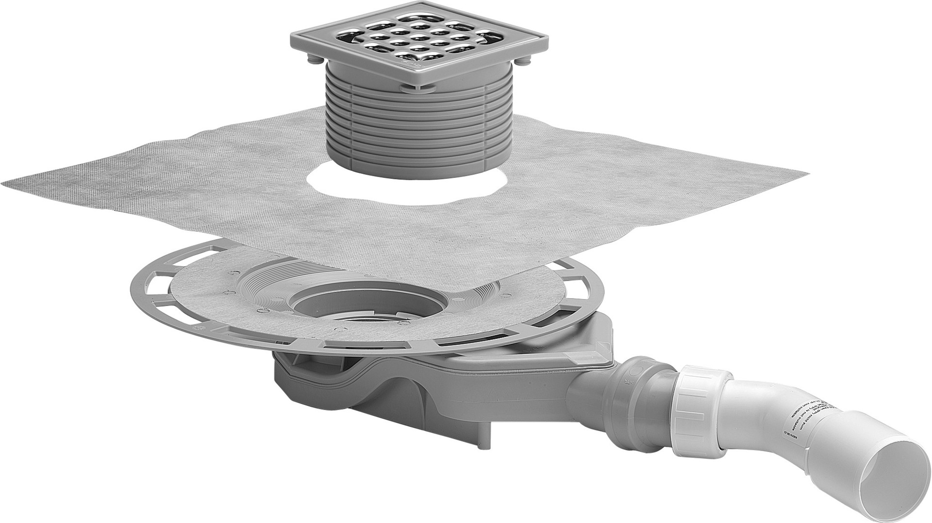 für Verbundabdichtung (geflieste Dusche) mit Abdichtungsmatte, Systemmaß 100, bestehend aus Aufsatz mit Rahmen Kunststoff, Rost Edelstahl 1.4301, Bauschutz, Schlüter-KERDI-Abdichtungsmanschette, Abdichtungsflansch, Geruchverschluss herausnehmbar, Ablaufbogen 45° verstellbar, Belastungsklasse K=300 kg, Sperrwasserhöhe 25 mm, Ablaufleistung Anstauhöhe 10 mm 0,5 l/s, Ablaufleistung Anstauhöhe 20 mm 0,55 l/s, Ablaufleistung nach DIN EN 1253