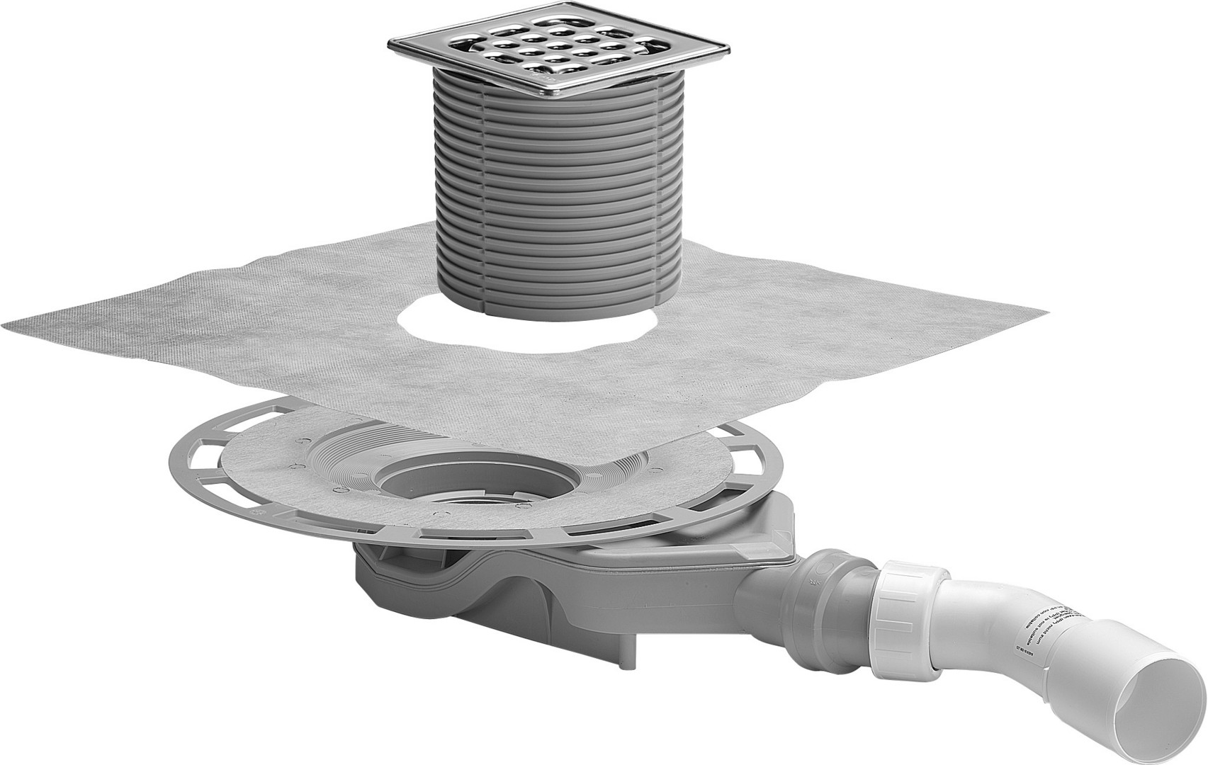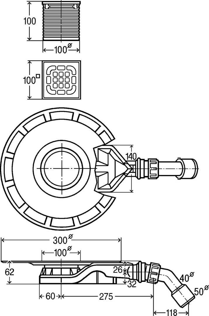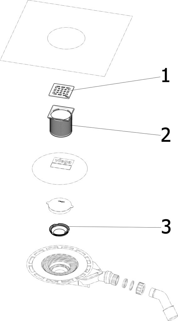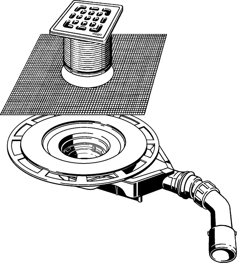 für Verbundabdichtung (geflieste Dusche) mit Abdichtungsmatte, Systemmaß 100, bestehend aus Aufsatz mit Rahmen Edelstahl 1.4404, Rost Edelstahl 1.4301, Bauschutz, Schlüter-KERDI-Abdichtungsmanschette, Abdichtungsflansch, Geruchverschluss herausnehmbar, Ablaufbogen 45° verstellbar, Belastungsklasse K=300 kg, Sperrwasserhöhe 25 mm, Ablaufleistung Anstauhöhe 10 mm 0,5 l/s, Ablaufleistung Anstauhöhe 20 mm 0,55 l/s, Ablaufleistung nach DIN EN 1253