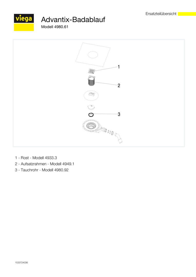 Viega Badablauf Advantix 4980.61 DN 40/50, BH 62 mm, Kunststoff, mit Aufsatz
